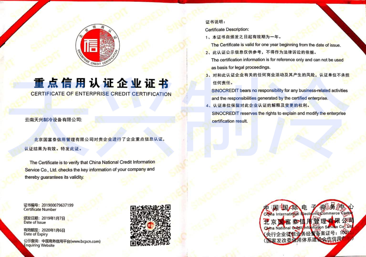 重點(diǎn)信用認(rèn)證企業(yè)證書(shū)